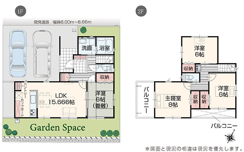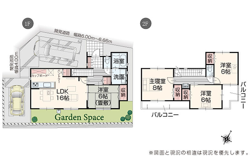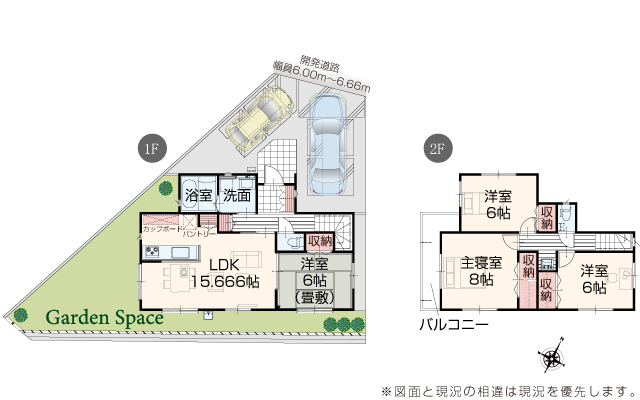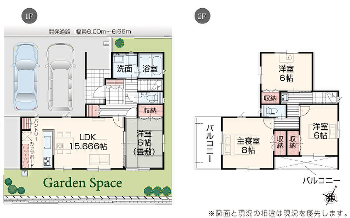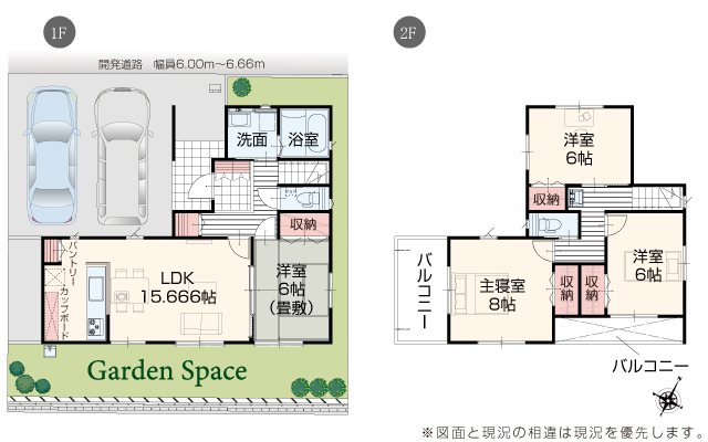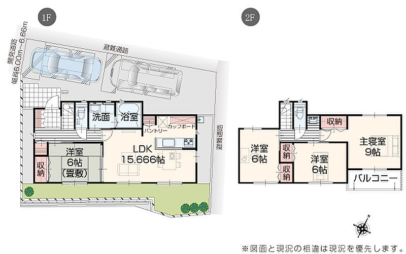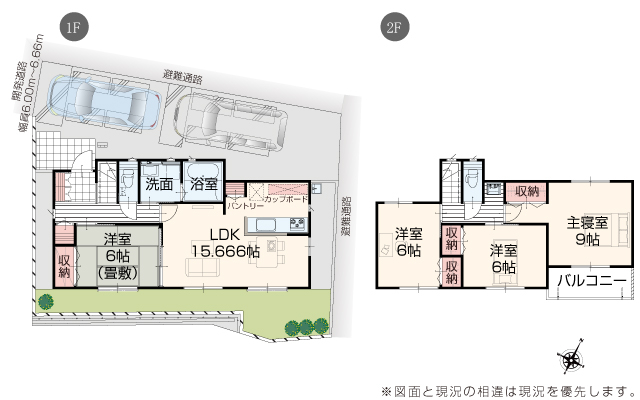| 駐車場 | 2台 | 道路の幅員 | 道路幅 4.00 m ~ 6.66 m アスファルト舗装 |