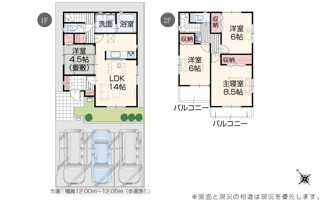 | 駐車場 | 3台 | 道路の幅員 | 道路幅 12.00 m ~ 12.05 m アスファルト舗装 |