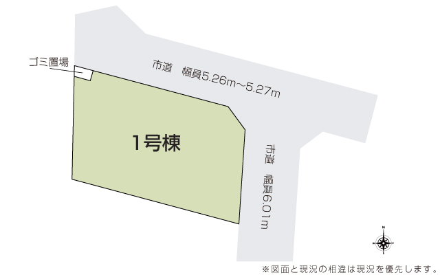 | 駐車場 | 3台 | 道路の幅員 | 道路幅 5.26 m ~ 6.01 m アスファルト舗装 |