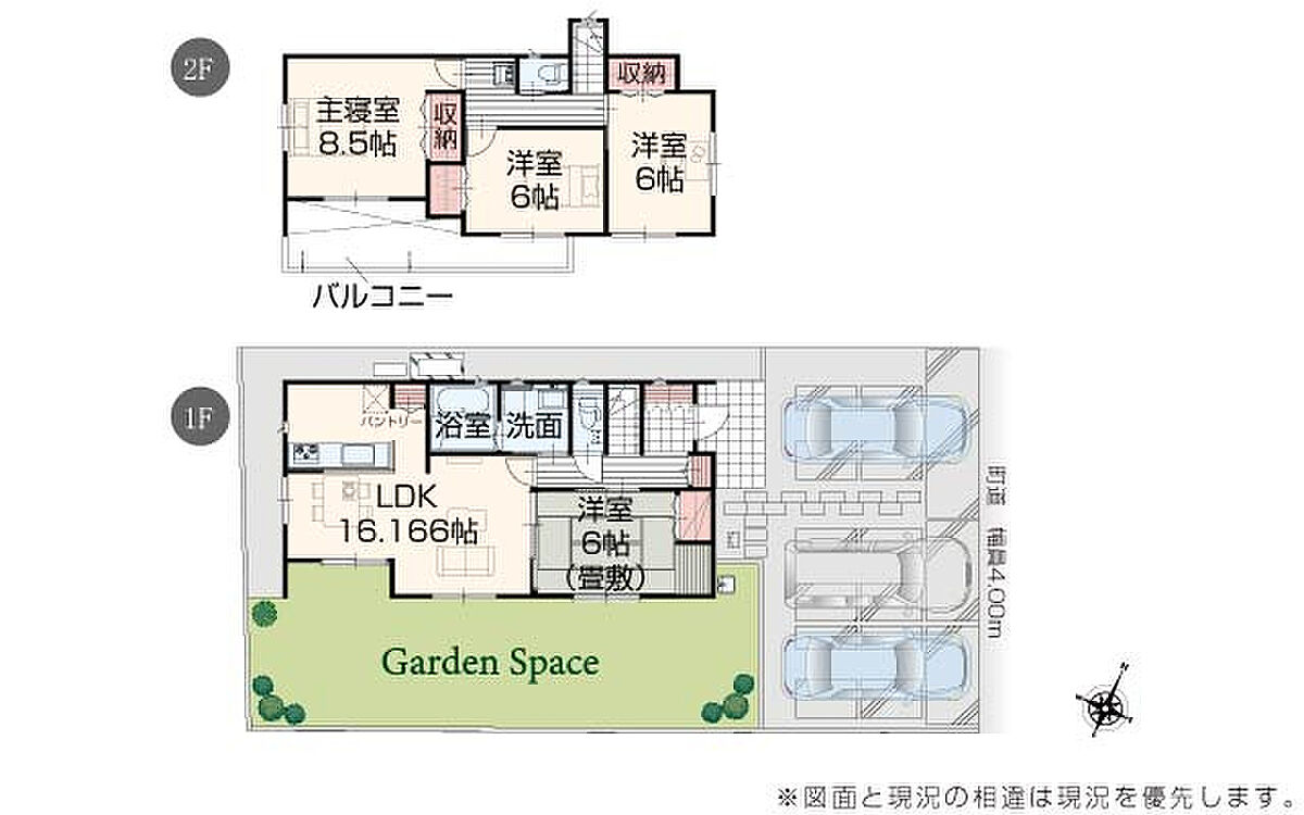 | 駐車場 | 3台 | 道路の幅員 | 道路幅 4.00 m アスファルト舗装 |