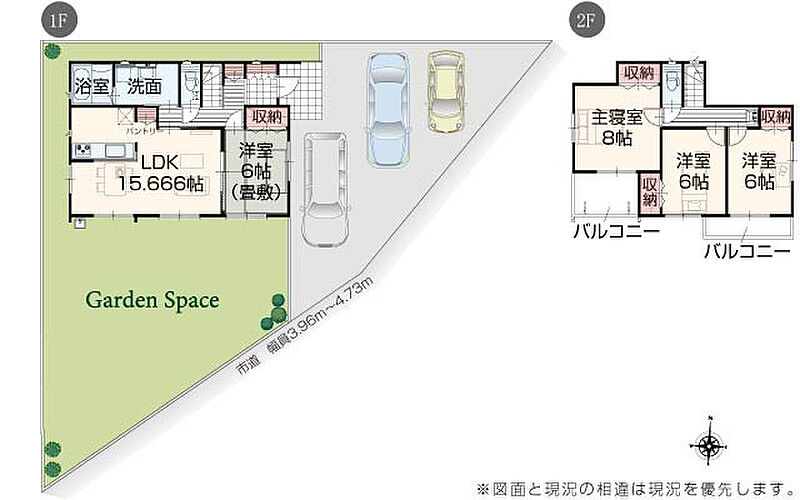 | 駐車場 | 3台 | 道路の幅員 | 道路幅 3.96 m ~ 4.73 m アスファルト舗装 |