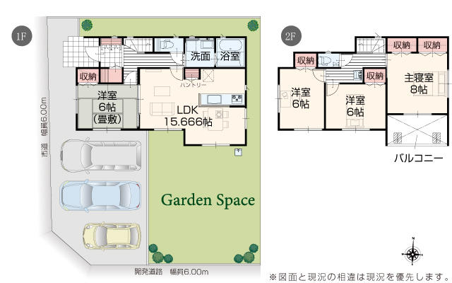 | 駐車場 | 3台 | 道路の幅員 | 道路幅 6.00 m アスファルト舗装 |
