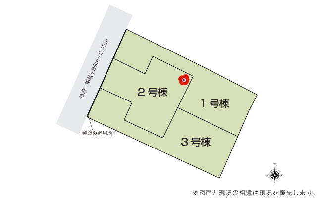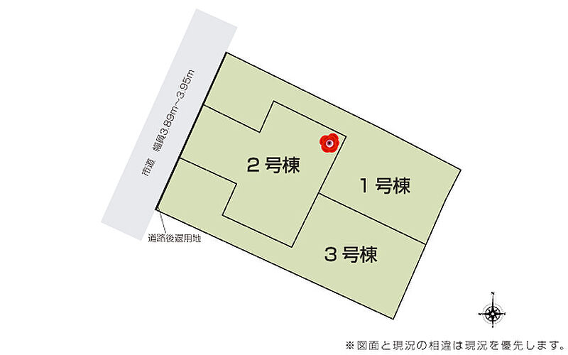 | 駐車場 | 2台 | 道路の幅員 | 道路幅 3.89 m ~ 3.95 m アスファルト舗装 |