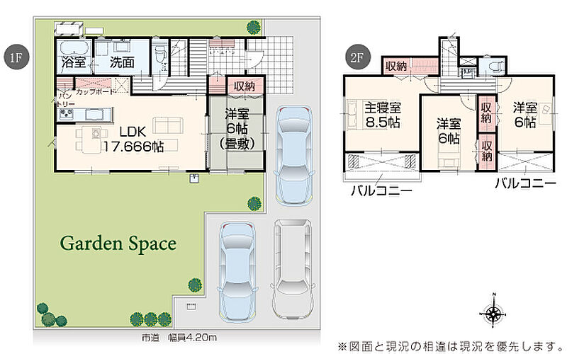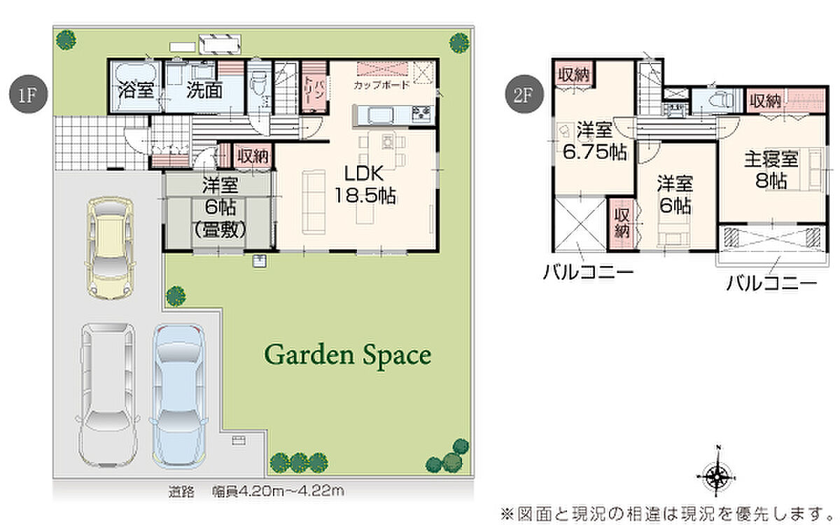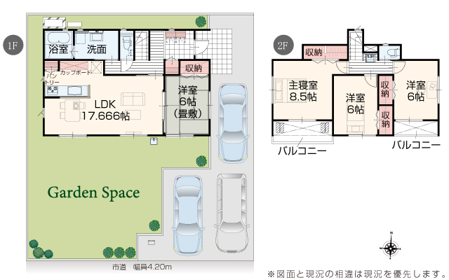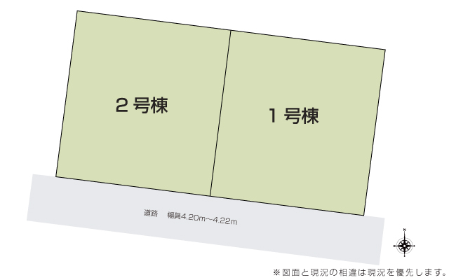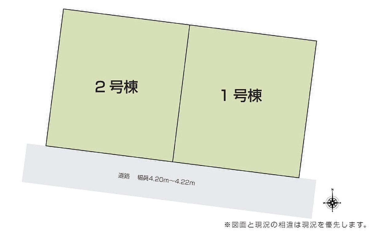 | 駐車場 | 3台 | 道路の幅員 | 道路幅 4.20 m ~ 4.22 m アスファルト舗装 |