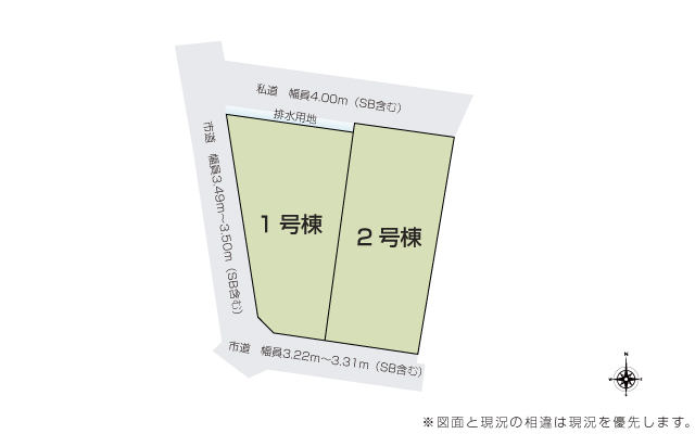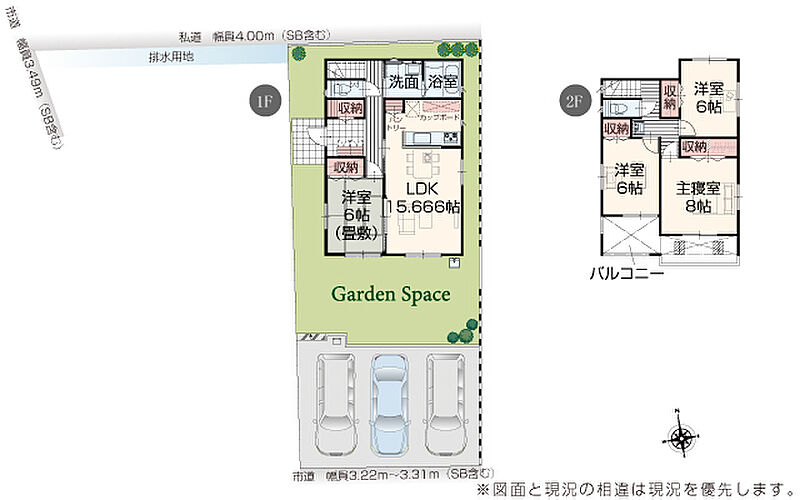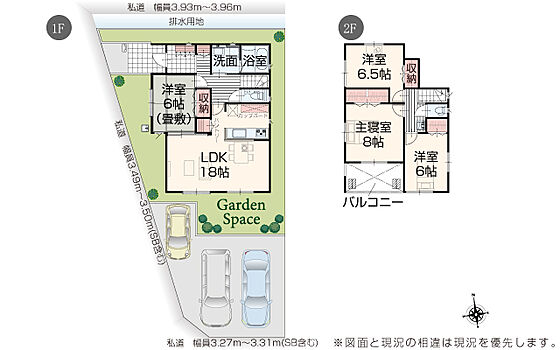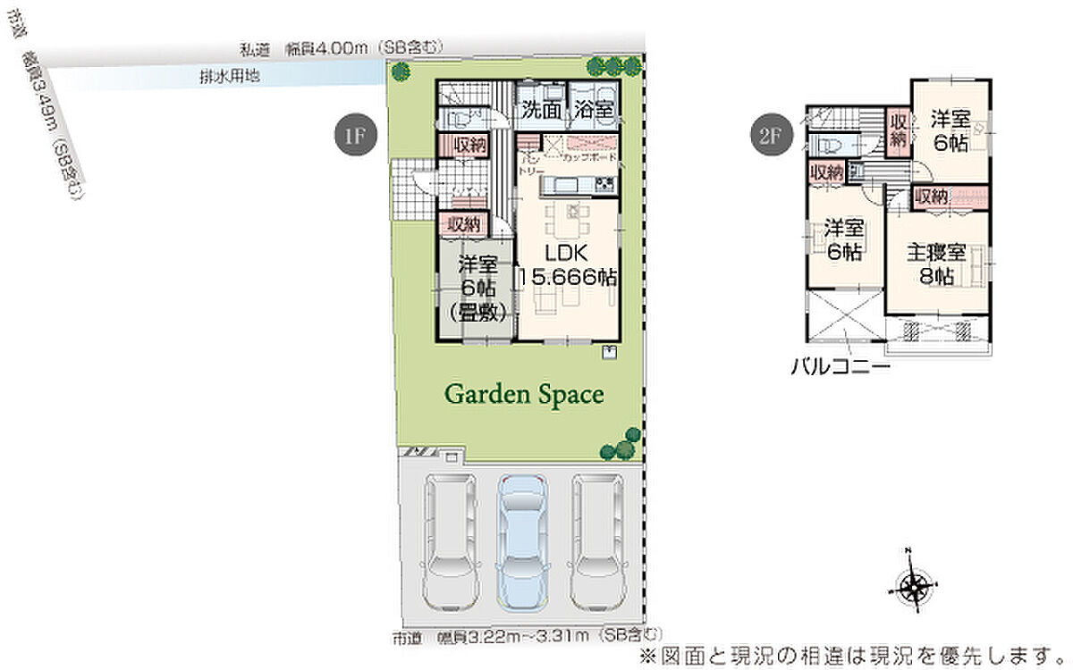 | 駐車場 | 3台 | 道路の幅員 | 道路幅 3.22 m ~ 4.00 m アスファルト舗装 |
