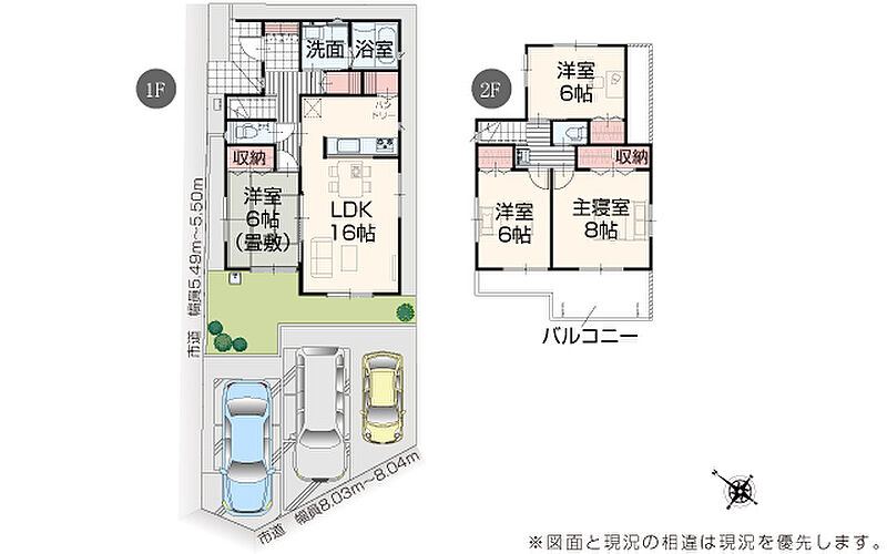 | 駐車場 | 3台 | 道路の幅員 | 道路幅 5.49 m ~ 8.04 m アスファルト舗装 |