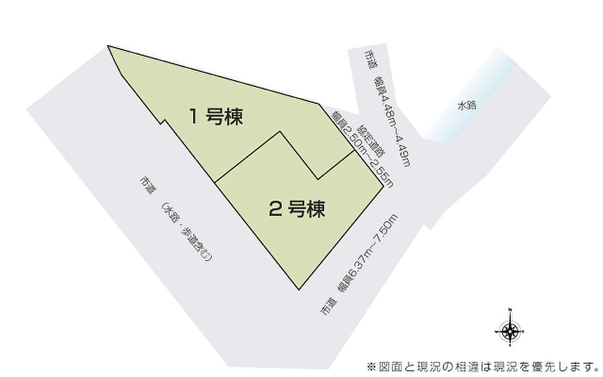 | 備考 | 公営水道、東京電力、個別プロパンガス、本下水 【完成時期】2026年5月完成予定(1・2号棟)※協定道路持分あり。1号棟:14m<sup>2</sup>、2号棟:11.4m<sup>2</sup>。※掲載画像は色、仕様、デザイン等変更される場合があります。※図面と現場との相違は現場を優先します。※完成時期・入居時期は天候等によって遅れる場合があります。また、完成時期は完了検査日(予定含む)としています。※周辺環境はページ公開日時点の情報となります。※建設エリア、時期によっては使用メーカー及び設備・仕様について一部変更される場合があります。詳しくはお問い合わせにてご確認下さい。内覧予約受付中物件管理番号:25-P1 | ||