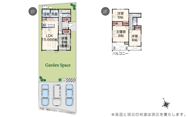 | 駐車場 | 3台 | 道路の幅員 | 道路幅 4.01 m ~ 4.51 m アスファルト舗装 |