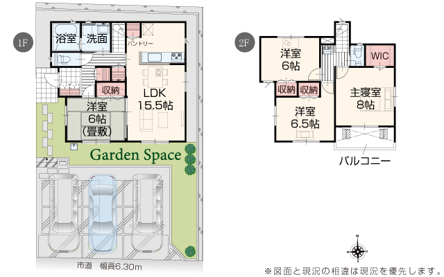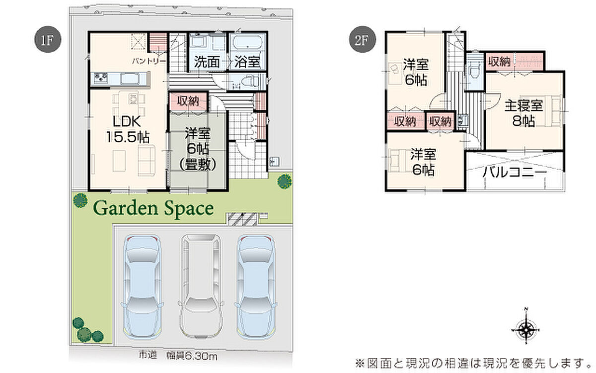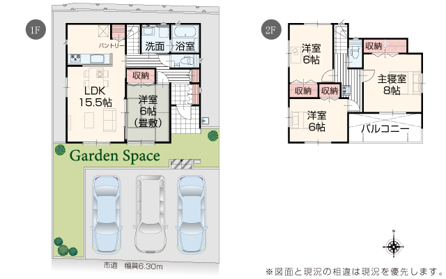 | 駐車場 | 3台 | 道路の幅員 | 道路幅 6.30 m アスファルト舗装 |