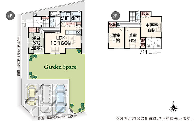 | 駐車場 | 3台 | 道路の幅員 | 道路幅 4.04 m ~ 5.42 m アスファルト舗装 |