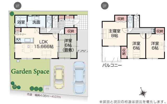 | 駐車場 | 2台 | 道路の幅員 | 道路幅 2.90 m ~ 4.07 m アスファルト舗装 |