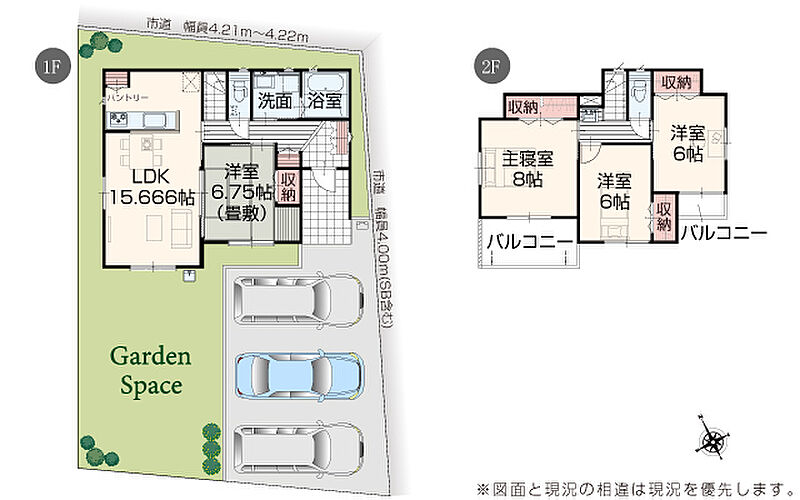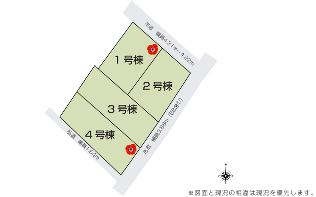 | 駐車場 | 3台 | 道路の幅員 | 道路幅 4.00 m ~ 4.22 m アスファルト舗装 |