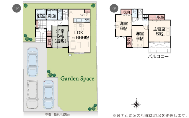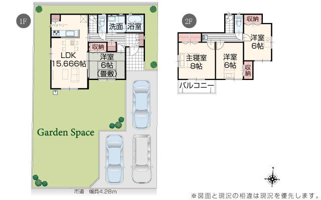 | 駐車場 | 3台 | 道路の幅員 | 道路幅 4.28 m アスファルト舗装 |