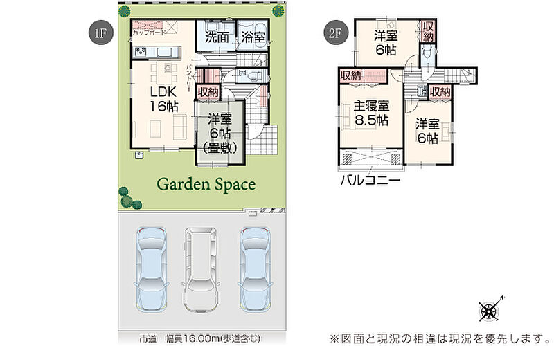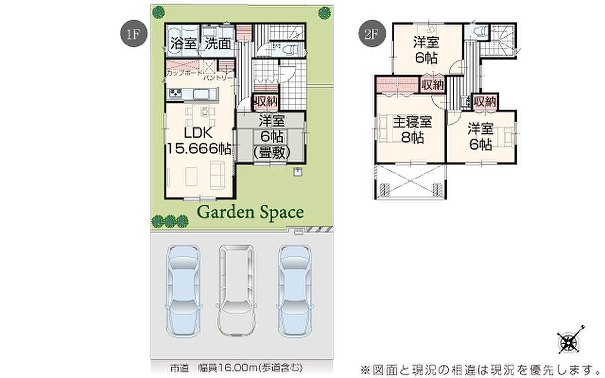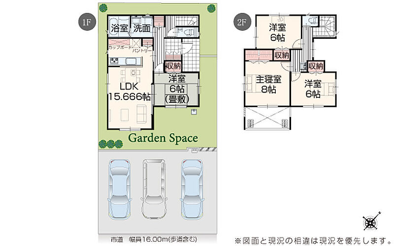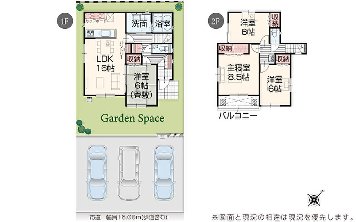 | 駐車場 | 3台 | 道路の幅員 | 道路幅 16.00 m アスファルト舗装 |