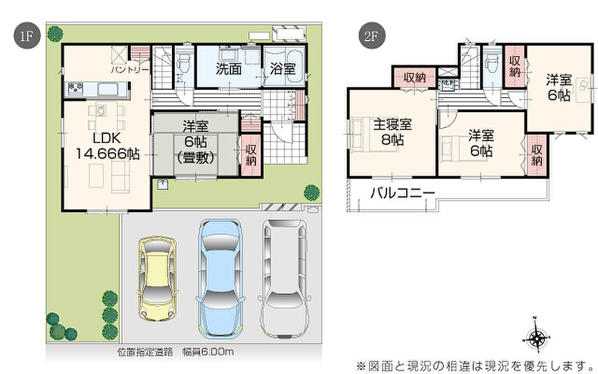 | 駐車場 | 3台 | 道路の幅員 | 道路幅 4.70 m ~ 10.00 m アスファルト舗装 |
