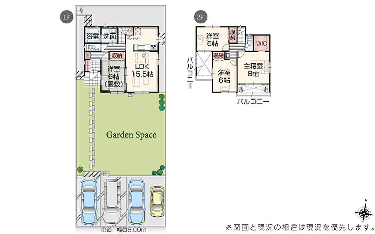 | 駐車場 | 4台 | 道路の幅員 | 道路幅 6.00 m アスファルト舗装 |