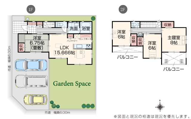 | 駐車場 | 3台 | 道路の幅員 | 道路幅 6.00 m アスファルト舗装 |