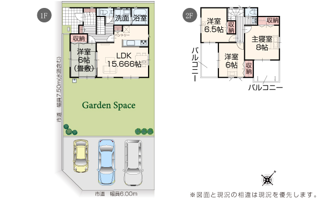 | 駐車場 | 3台 | 道路の幅員 | 道路幅 6.00 m ~ 7.50 m |