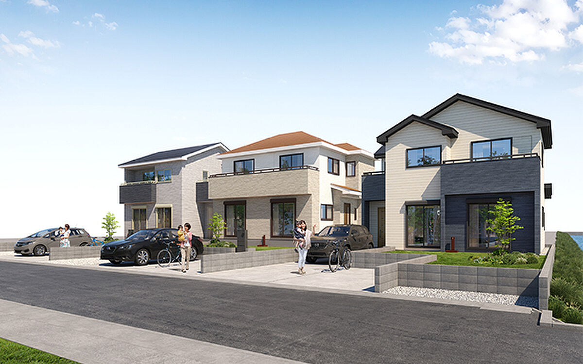 - ※完成予想図やCG合成画像は、門塀・植栽・庭・外観等、実際とは多少異なる場合があります。