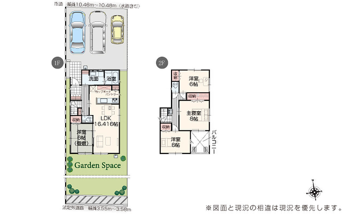 | 駐車場 | 3台 | 道路の幅員 | 道路幅 3.53 m ~ 10.48 m アスファルト舗装 |
