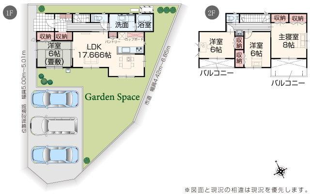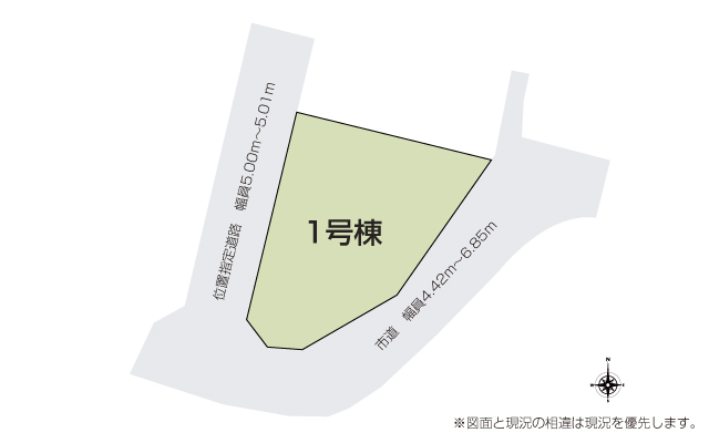 | 駐車場 | 3台 | 道路の幅員 | 道路幅 4.42 m ~ 6.85 m アスファルト舗装 |