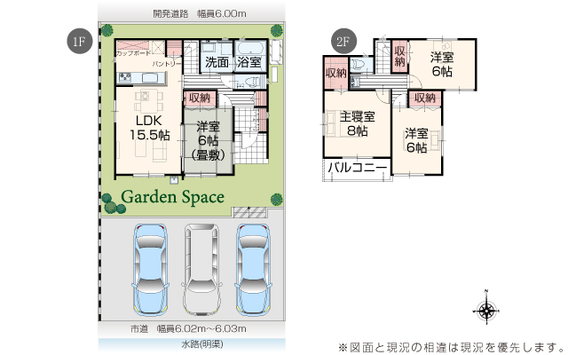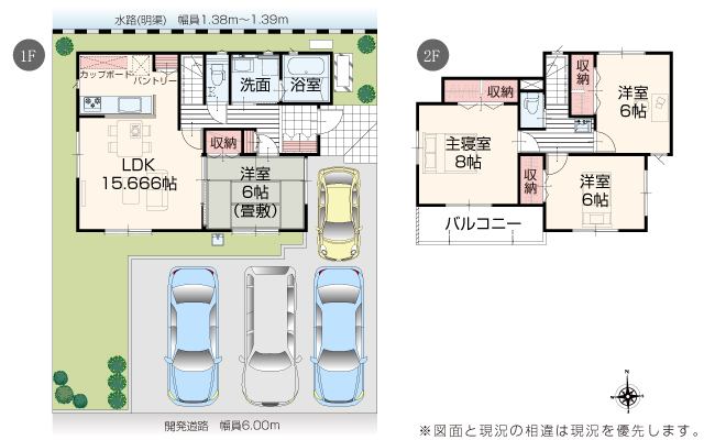 | 駐車場 | 3台 | 道路の幅員 | 道路幅 6.00 m ~ 6.03 m アスファルト舗装 |