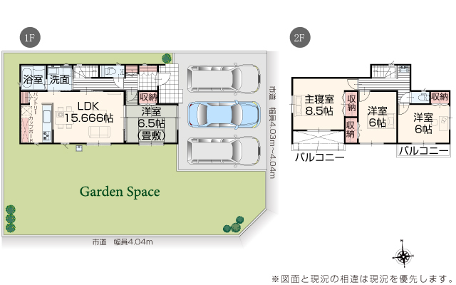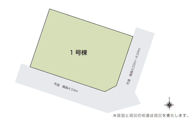 | 駐車場 | 3台 | 道路の幅員 | 道路幅 4.03 m ~ 4.04 m アスファルト舗装 |