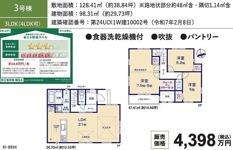 (BELS認定)魅力あるゆとりの住まい♪~最終1棟~