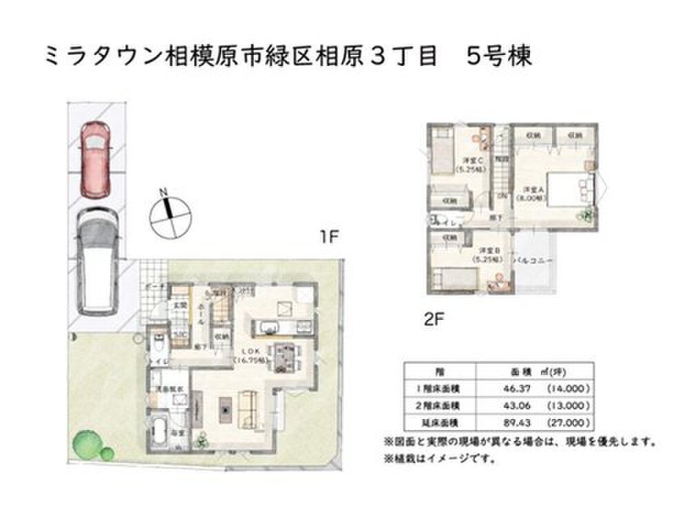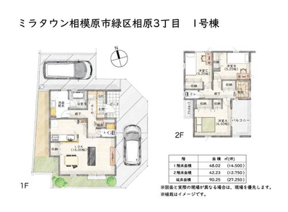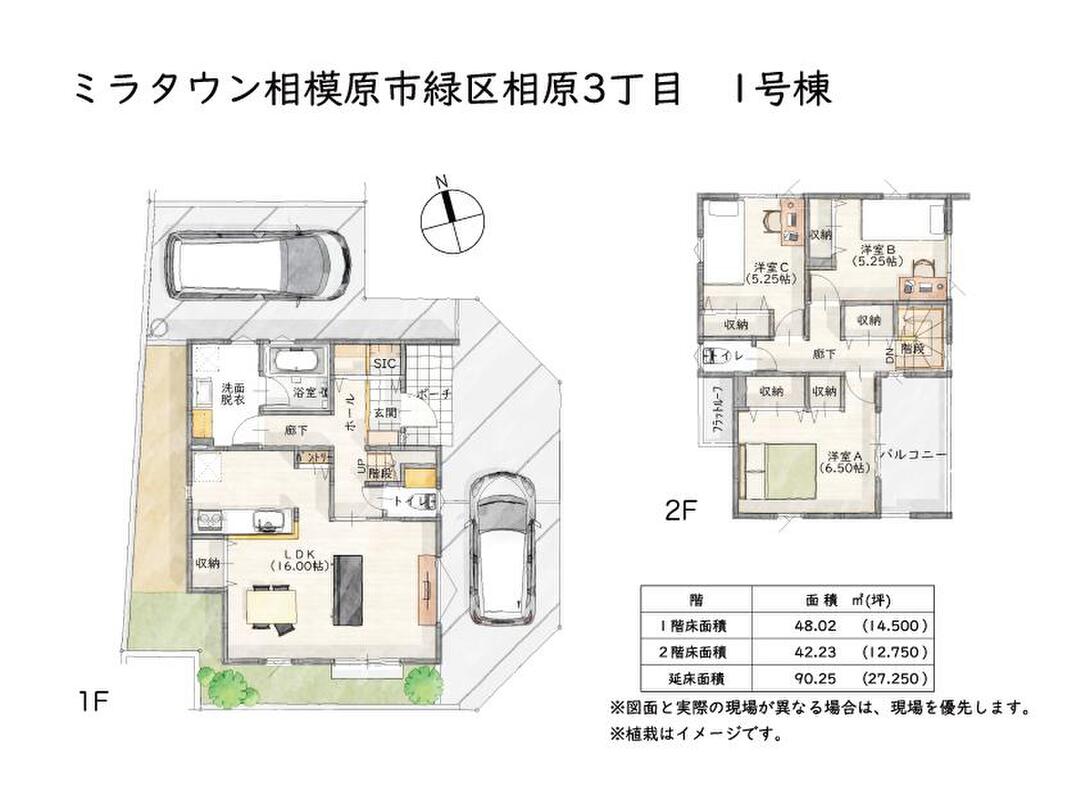 | 建物面積 | 89.43m2~90.25m2(27.05坪~27.30坪) | 土地面積 | 122.52m2~125.51m2(37.06坪~37.96坪) |