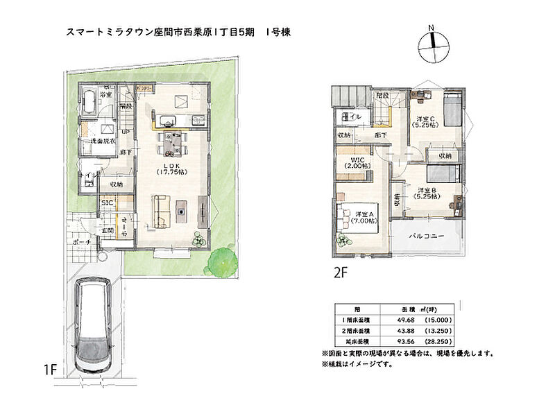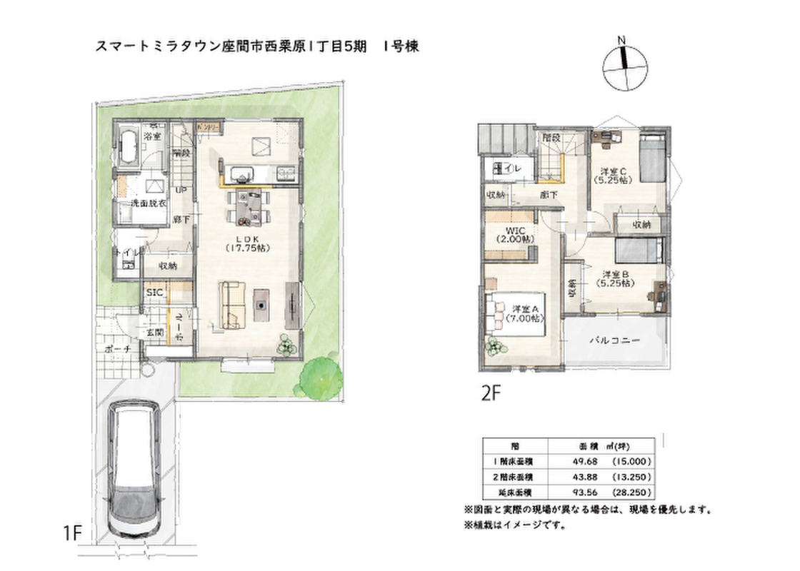 - ※完成予想図やCG合成画像は、門塀・植栽・庭・外観等、実際とは多少異なる場合があります。