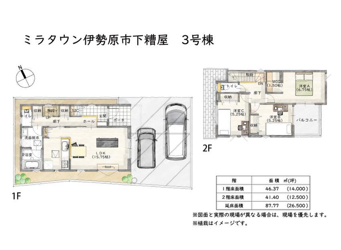 - ※完成予想図やCG合成画像は、門塀・植栽・庭・外観等、実際とは多少異なる場合があります。