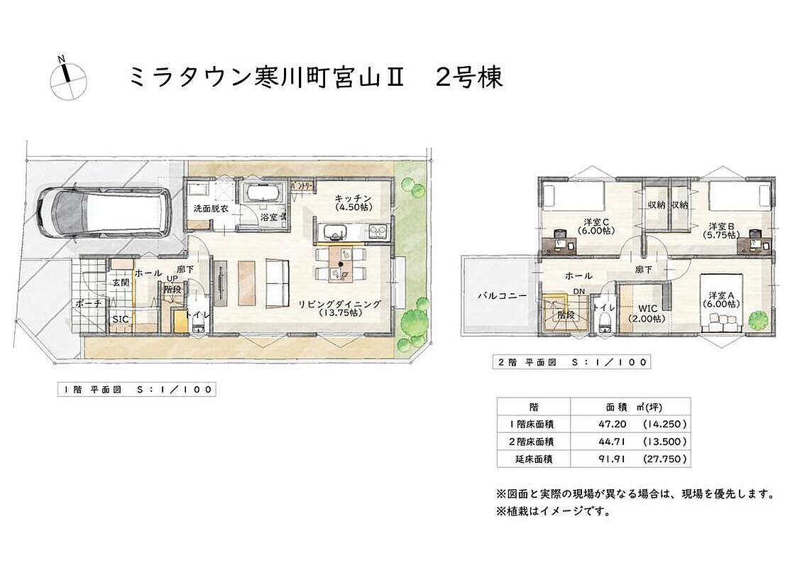 - ※完成予想図やCG合成画像は、門塀・植栽・庭・外観等、実際とは多少異なる場合があります。