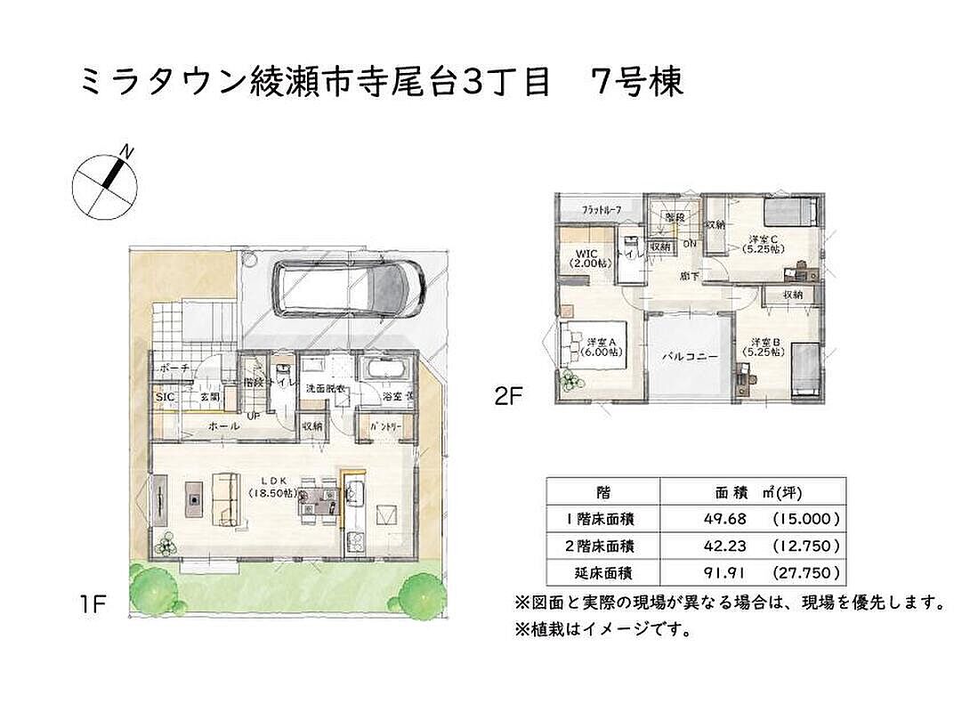 | 建物面積 | 91.91m2 | 土地面積 | 111.2m2 |