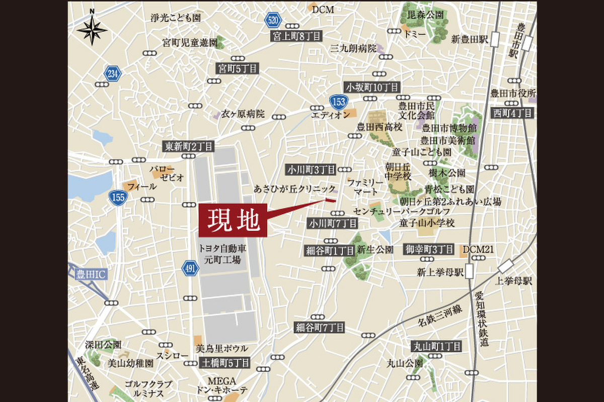 愛知環状鉄道「新上挙母」駅 徒歩19分~20分 名鉄三河線「上挙母」駅 徒歩22分~24分 愛知環状鉄道「新豊田」駅 徒歩28分~29分 |
