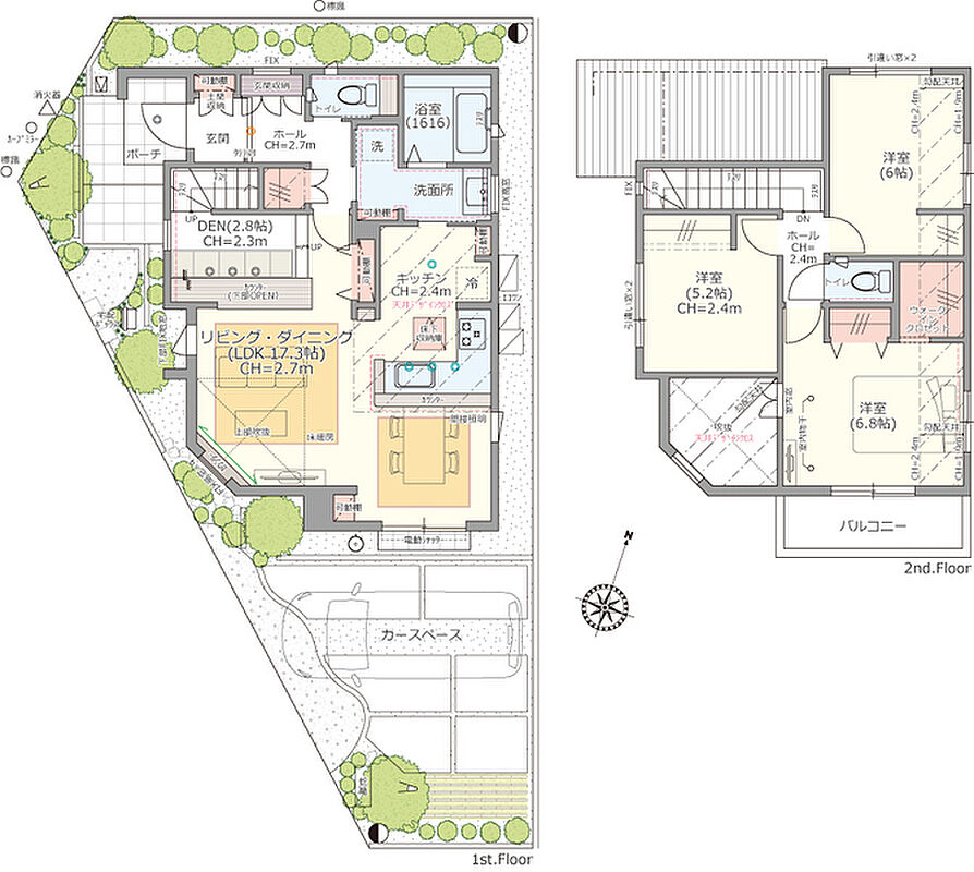 - ※完成予想図やCG合成画像は、門塀・植栽・庭・外観等、実際とは多少異なる場合があります。