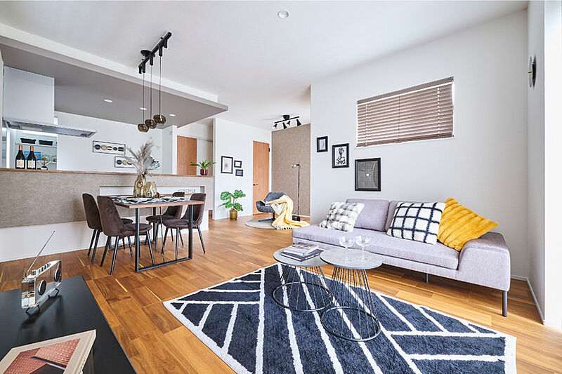 間仕切りがない時は、人が集まってもゆとりのある伸びやかなリビングとして。間仕切りを追加すれば、個室のように使えるマルチラウンジに。家族の人数や暮らし方、ライフステージの変化など、家族にとって一番使いやすいスタイルで暮らせます。※間仕切りの追加は別途費用が必要となります。※号棟によりカーテンボックスが付きます。