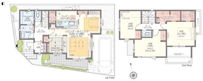 | 間取り | 3LDK+DEN+パントリーコーナー+ウォークスルークロゼット+ウォークインクロゼットコーナー | 建物構造 | 木造2階建(2×4工法) |