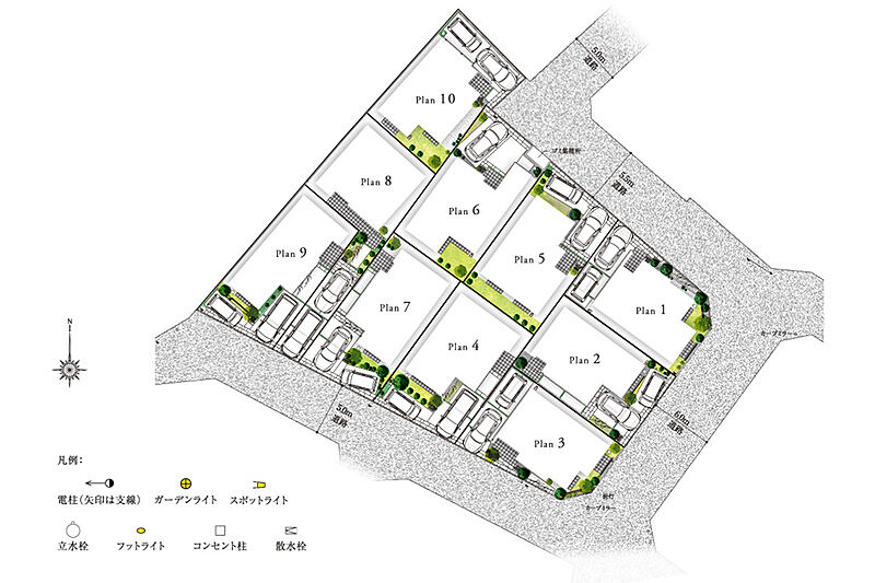 ■共有持分/有(ごみ集積所2.70m1×1/10) ■地域・地区/準防火地域・第一種高度地区・地区計画区域 ※8号棟の土地面積119.30m2には、路地状部分37.23m2(約32%)を含みます。 ※灯かりのいえなみ協定(R)があります。詳細は販売員までご確認下さい。 ※建ぺい率・容積率は接道状況や耐火構造等の各種条件により、緩和・制限される場合があります。 ※本号棟は抽選販売となります。お申込みの際には、2025年分の収入証明書、印鑑(認印)、身分証明書(運転免許証、健康保険証)をご持参ください。 2026年4月3日(金)17:00まで登録申込受付、同日17:30より抽選 [設備]公営水道/東京電力・他/都市ガス/本下水/カースペース/外構/植栽その他付帯設備一式 |