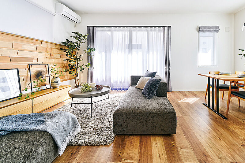 家族が集まってもゆとりを感じられる伸びやかなリビング。くつろぎの時間をゆったりと味わえます。