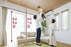 リビングの天井高を2.7m、リビングの掃き出し窓の高さを床から2.2mに設定しました。※一部天井が下がる場合がございます。