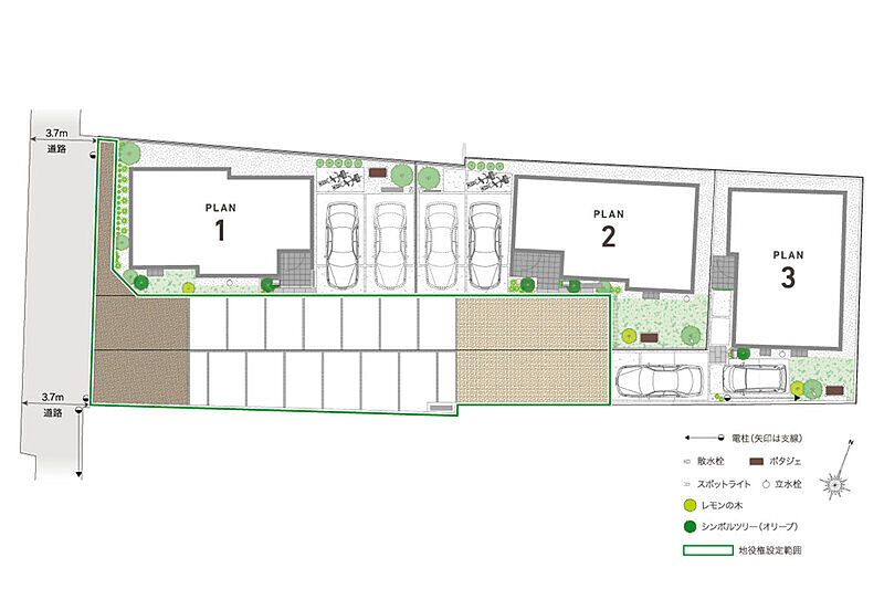 ■地域・地区/法22条区域・第一種高度地区/第二種高度地区・絶対高さ10m・宅地造成等工事規制区域 ※販売価格には、建物の消費税10%分を含みます。 ※灯かりのいえなみ協定(R)があります。詳細は販売員までご確認下さい。 ※建ぺい率・容積率は接道状況や耐火構造等の各種条件により、緩和・制限される場合があります。 ※土地面積には承役地を含みます。承役地部分には通行の妨げとなる物を設けることはできません。詳細は土地利用と地役権設定に関する覚書をご確認下さい。 ※3号棟の土地面積212.41m2には、路地状部分107.57m2約51%)を含みます。 ※3号棟の建物面積102.06m2には、バルコニーの一部0.82m2を含みます。 ※3号棟は抽選販売となります。お申込みの際には、2025年分の収入証明書、印鑑(認印)、身分証明書(運転免許証、健康保険証)をご持参ください。 2026年4月3日(金)17:00まで登録申込受付、同日17:30より抽選 [設備]公営水道/都市ガス/本下水/カースペース/外構/植栽その他付帯設備一式 |