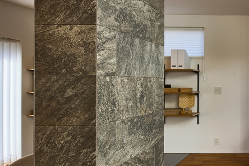天然石の模様を再現したエコカラットプラスを壁の一部に採用しまし...