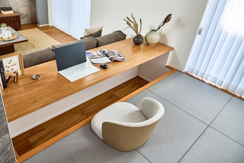 堀机タイプのカウンターや好きなものを飾れる棚を設置し、趣味や自...