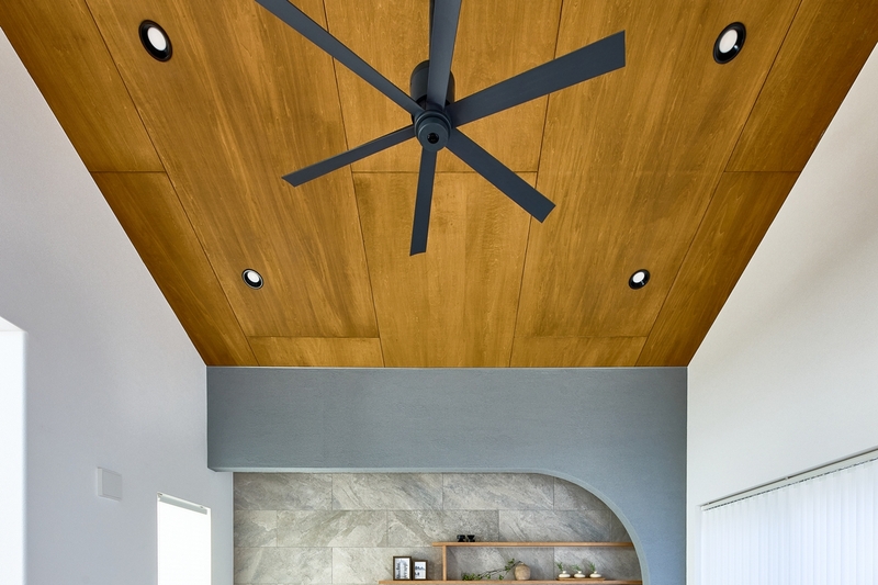 上品な色合いと美しい木目が魅力のシナ天井。壁面の淡い色彩とコン...