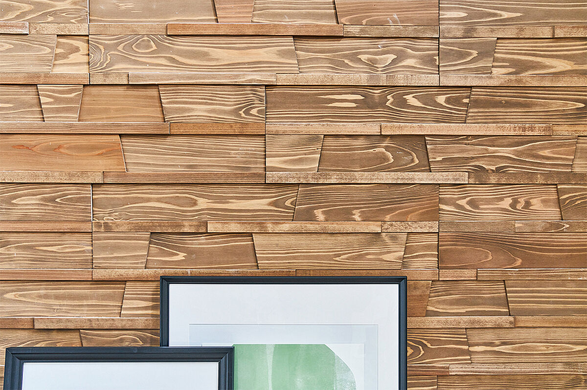 厚みや幅の異なる国産杉材を使用した壁装飾パネル。無垢材ならではの調湿効果と風合いが、居心地のよい空間を創ります。