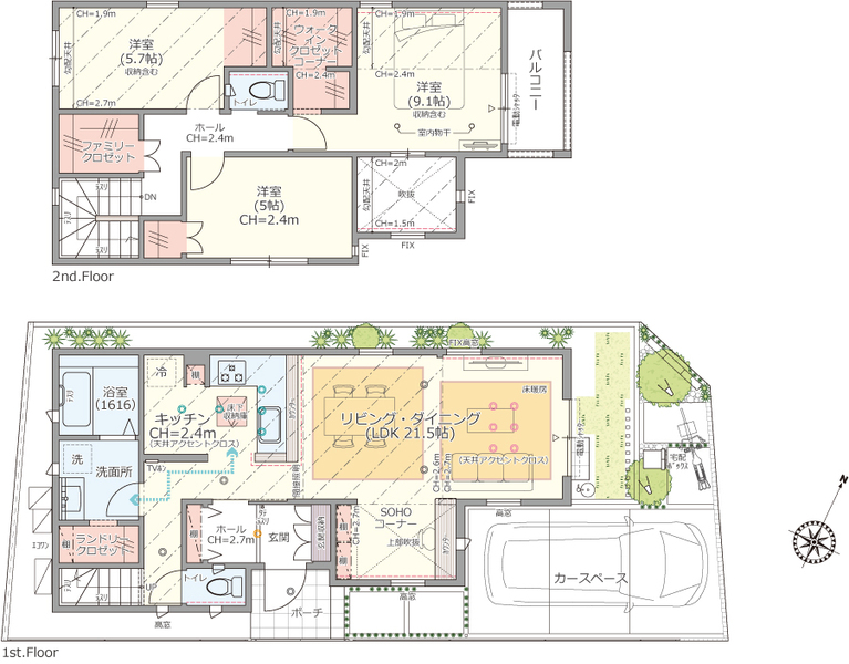 ■リビング2.7mハイシーリング、2.2mハイサッシ