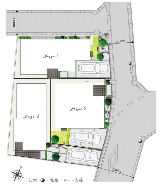 | 駐車場 | 1台 | 道路の幅員 | 東側4.0M~6.0M公道、北側4.0M私道 |