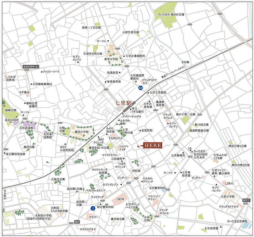 東武野田線「七里」駅 徒歩6分 JR東北本線「大宮」駅 バス40分 東門前バス停 徒歩4分 |