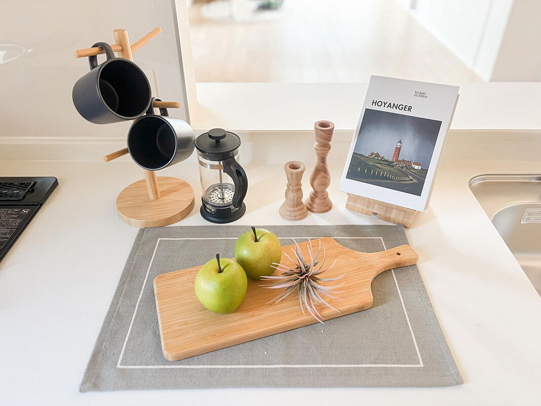 カウンターにはおしゃれでスタイリッシュな人造大理石を採用。水垢...