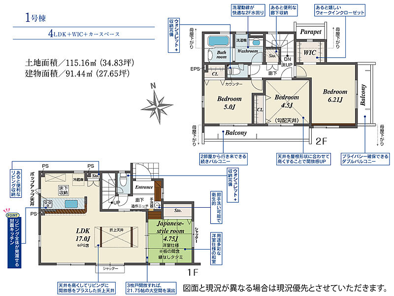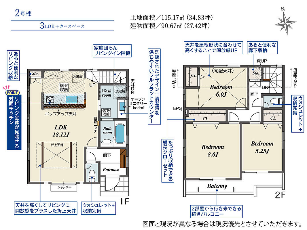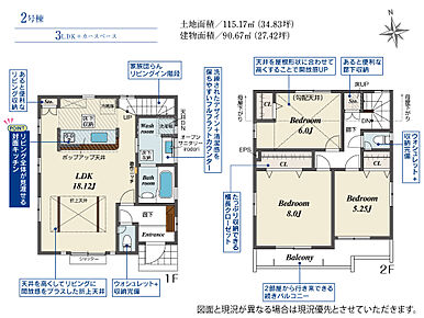 | 建物面積 | 90.67m2(約27.42坪)~91.44m2(約27.66坪) | 土地面積 | 115.16m2(約34.83坪)~115.17m2(約34.83坪) |